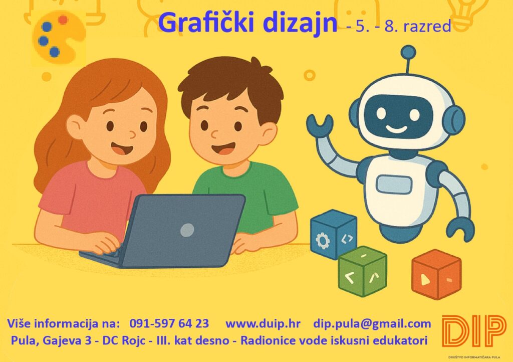 Upisi traju od 1. do 12. rujna 2025. Društvo Informatičara Pula – Gajeva 3 – DC Rojc – III. Kat